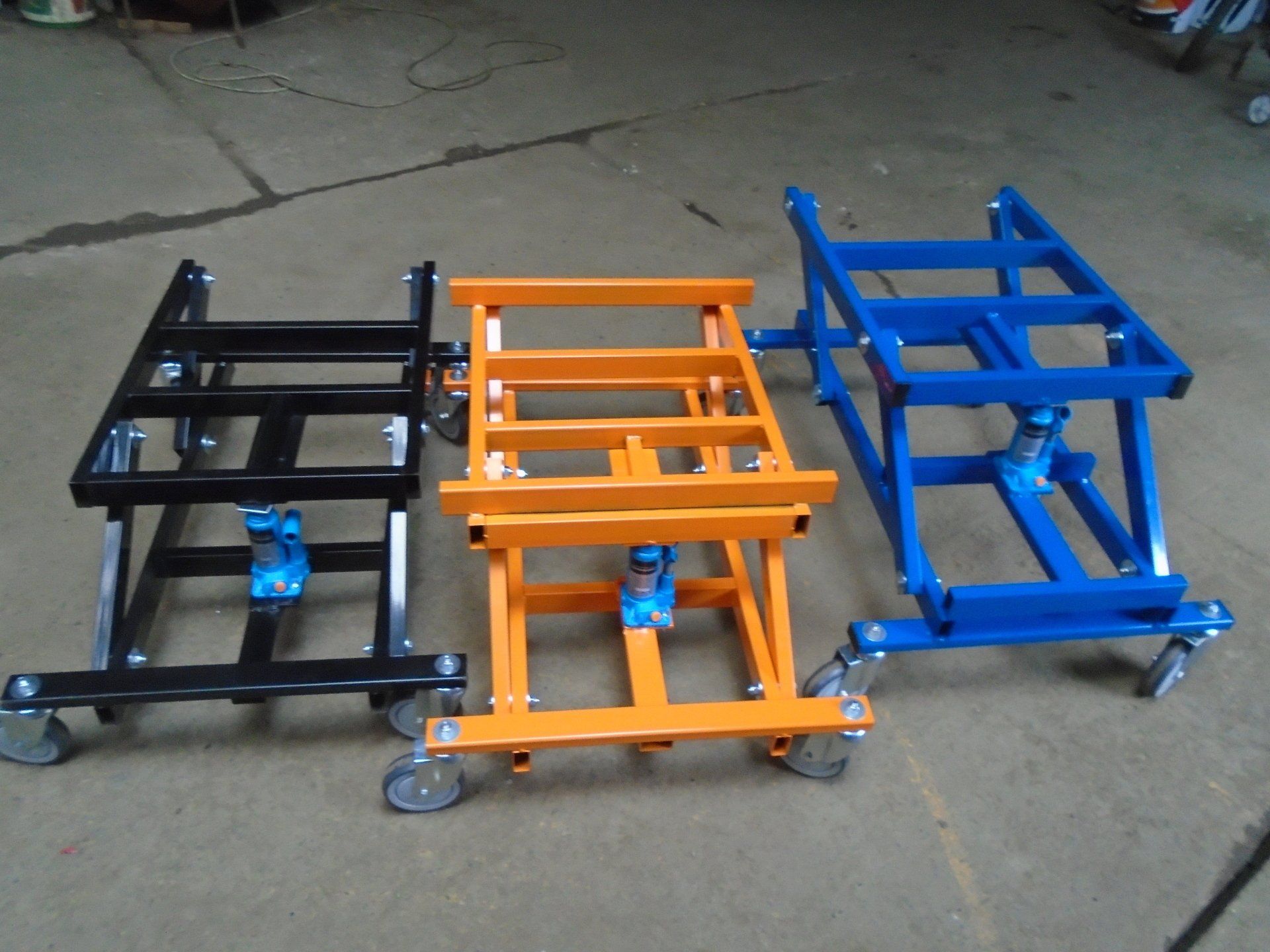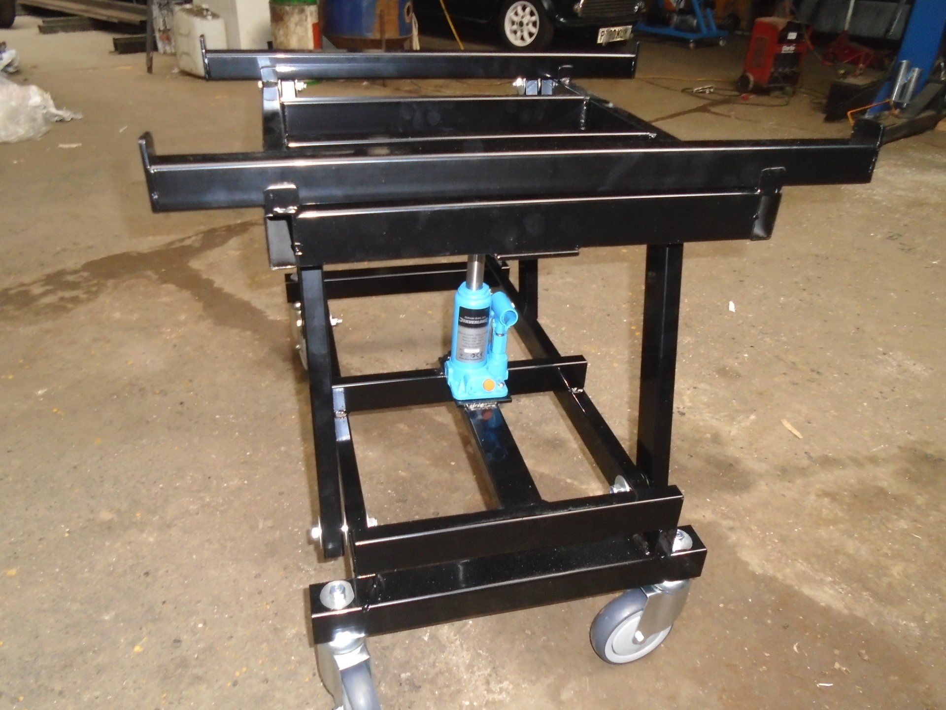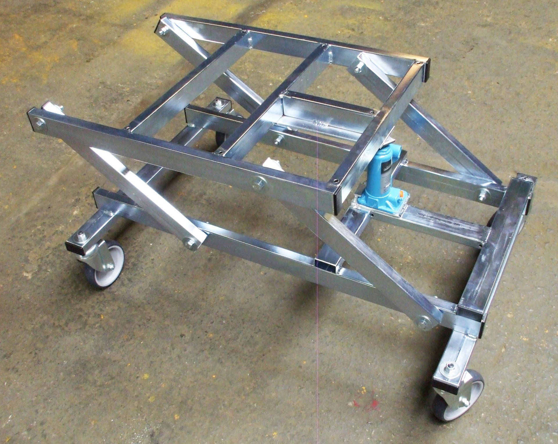 Universal Hydraulic Pool Table Trolley, fitted with four swivel wheels, made using mild steel and a two tonne bottle jack.